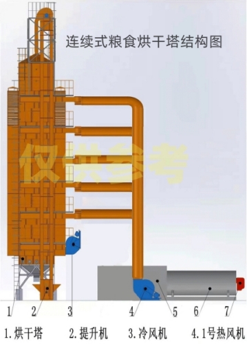 大型200噸玉米烘干塔工作原理:連續(xù)式糧食烘干塔結(jié)構(gòu)圖